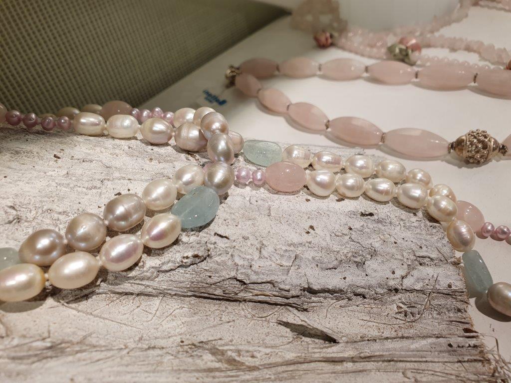 Ihren persönlichen Schmuck gestalten wir mit Perlen, Edelsteinen sowie Edelmetallen und Modeschmuckteilen. Außerdem finden Sie bei uns verschiedene kleine, edle Kollektionen mit Accessoires wie Schals, Kleider oder Knöpfe.